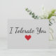 Tarjeta Festiva Funny “I Tolerate You” Love Humor Valentine’s Day