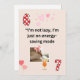 Perfect for the person who loves their naps as much as they love you! This hilarious card features a sleepy cat wearing a pink bow, enjoying a tropical drink, with the relatable quote: "I'm not lazy, I'm just on energy-saving mode." Adorned with polka-dot numbers '6' and '7' and soft pink hearts, this card is a great way to bring a smile to a friend, partner, or fellow cat lover who appreciates a good joke about relaxation.