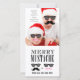 Diviértase enviando estas divertidas tarjetas de fotos navideñas de Mustache esta temporada de fiestas. Excelente para recién casados que envían sus primeros saludos de Navidad o una foto familiar que agrega un poco de humor a sus Navidades Tarjetas de Saludo . Añade tu foto en esta tarjeta y mueve el bigote rosado chica y las gafas de sol y el bigote y gafas de sol del hombre negro para que encajen sobre los lugares apropiados en la cara de tu foto. ¿Necesita hacer los bigotes más grandes o más pequeños? No hay problema con las herramientas de edición fáciles de usar que puedes cambiar el tamaño, rotar y mover usando el botón "personalizar it" para subir las herramientas de edición. Merry Mustache and Sungafas Design and Idea de Elke Clarke© para MovieFun©. Foto por ejemplo de Petr Kratochvil