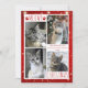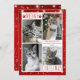 Graciosa tarjeta de felicitación para festividades de gato con 4 fotos con los NAVIDADES de MEOWY (o el saludo de su personalizado) en tipografía moderna con letras a mano acentuada con huellas de pata de gato en un fondo blanco y rojo con luces y estrellas. ASISTENCIA: Para obtener ayuda con la modificación o personalización del diseño, el cambio de color, el redimensionamiento, la transferencia del diseño a otro producto o si desea coordinar elementos, póngase en contacto con el diseñador ANTES DE PEDIDOS a través de la pestaña del MENSAJE de charla de Zazzle, o envíe un correo electrónico a makeitaboutyoustore@gmail.com.