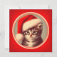 Tarjeta Festiva Gatito Adorable con Gorro de Santa Rojo Retro