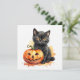 Tarjeta Festiva Gatito negro de acuarela de Halloween y calabaza