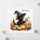 Tarjeta Festiva Gatito negro de Halloween con calabazas y sombrero