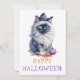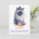 Tarjeta Festiva Gato birmano acuarela Feliz Halloween con sombrero
