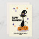 Tarjeta Festiva Gato de Halloween Atómico de Mitad de Siglo