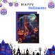 Gato lindo divertido de Halloween con calabaza de color azul en la parte trasera.