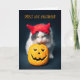 Tarjeta Festiva Gato feliz de Halloween en calabaza de peluquería