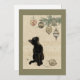 Tarjeta Festiva Gato negro antiguo mirando ornamentos