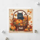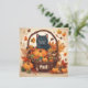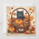 Tarjeta Festiva Gato negro con cesta de cosecha de otoño marrón