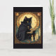 Tarjeta Festiva Gato negro de Halloween leyendo un libro