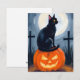 Tarjeta de vacaciones de Gato Negro Jack-O-Lantern Halloween Pintado