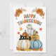 Tarjeta Festiva Gato y calabazas retro Felices Acción de Gracias