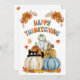 "Feliz Día de Acción de Gracias" ¡Qué lindo diseño en colores de otoño retro! Esta tarjeta de Acción de Gracias sería una tarjeta divertida para los niños y los amantes de los gatos. Puede personalizar el texto y convertirlo en una tarjeta de invitación.