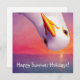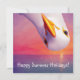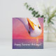 Gaviota al revés registrándote con un hermoso atardecer naranja morado al fondo. Te deseo unas felices vacaciones de verano. Cambie el texto a su gusto.
