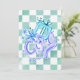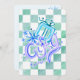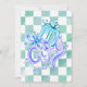 Fun and trendy flat holiday card featuring hand-painted “Gifty Time” lettering in icy blue and purple with delicate snowflakes and winter swirls on a mint-green checkerboard background. Perfect for modern Christmas greetings, New Year wishes, winter birthdays or stylish seasonal cards on premium matte paper.