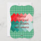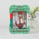 Adorable patrón de gingham verde y blanco con triángulos geométricos rojos y verdes y una foto para hacerlo especial. En la parte posterior de la tarjeta, puedes agregar nombres o texto.