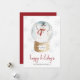 Esta tarjeta de vacaciones navideñas linda y caprichosa presenta un hermoso muñeco de nieve en acuarela dentro de un globo de nieve con copos de nieve gris pálido y un elegante 'felices fiestas' en letra manuscrita. La parte trasera de la tarjeta incluye un mensaje para personalizar o déjala en blanco para eliminar el mensaje.