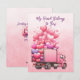 Tarjeta Festiva Globos de Corazones Rosas Camión en Rosa
