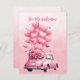 Tarjeta Festiva Globos de Corazones Rosas Coche en Rosa
