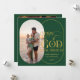 ¡Gloria a Dios! Celebre la temporada navideña con esta tarjeta de felicitación cristiana moderna y elegante. El diseño presenta dos fotos familiares (delante y detrás) y campos de texto para agregar su nombre y año, así como más espacio para un mensaje personal en el reverso. Difunda la alegría esta temporada navideña con esta tarjeta de Navidad chic y elegante.