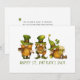 Tarjeta del Día de San Patricio con una ilustración de tres gnomos irlandeses junto con las palabras "Feliz Día de San Patricio" y una bendición irlandesa como mensaje en el reverso de la tarjeta. Personalízala con tu propio mensaje y nombres o déjala en blanco para escribir lo tuyo. Perfecta para desear a familiares y amigos un poco más de suerte este año.