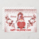 Tarjeta plana de vacaciones de Gnomos de Amor Feliz Día de San Valentín. Un gnomo lindo con un gran corazón rojo. Personaliza los nombres o el mensaje en el corazón. Comparte esto con el que amas, tu familia, amigos o niños en la clase.