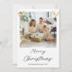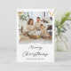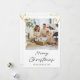 Share warm holiday wishes with this elegant Christmas photo greeting card featuring hanging gold flat ornaments in the top corners, a central photo, and a festive “Merry Christmas” message below. Perfect for personalized holiday greetings to family and friends. GCard-003