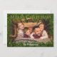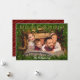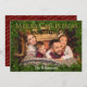 Una atractiva y atractiva tarjeta de Navidades con la foto de tu familia resaltada por un marco de ramas de árboles de Navidad. Dorado espumoso Feliz Navidad a lo largo de la parte superior y tus nombres cerca del fondo. En la parte trasera hay un patrón repetido de la dorada Feliz Navidad contra un rojo oscuro.