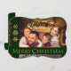 Un moderno diseño de tarjetas de Navidades cristianos con tu foto familiar enmarcada por bandas verdes Navidades y un brillante oro Feliz Navidad. Este diseño se traslada a la parte posterior donde puede personalizar el saludo de sus Navidades, nombres y espacio para su nota personal manuscrita. Espectacular.