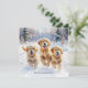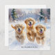 Envíe sus deseos festivos a los 'Navidades de cachorros con esta linda tarjeta. La tarjeta muestra tres adorables cachorros de Golden Retriever, que corren excitados a través de la nieve del invierno, con árboles verdes. Arquear encima de la parte superior es saludar a los 'Navidades de cachorros, mientras que debajo de los perros hay un texto que personalizar con tu nombre o nombres u otro texto. Ideal para los amantes del perro, la tarjeta es una elección divertida y festiva para las vacaciones con temática canina.