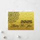 Greeting wish card Happy New Year written in English in black font with mandala on a golden background - editable text and background