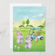 A bit of a fantasy, this unique golf loving bunny Easter card is special and joyful -- and personalized additionally with the family name. If you have any design questions or a special request, please send an email to: charmdesignstudio@rcn.com and we'll be delighted to assist. Also available for digital download.