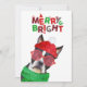 Tarjeta de vacaciones de Gorra Scarf Merry & Bright Boston Terrier Glasses
