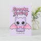 ¡Celebra la primavera con un toque espeluznante! Esta tarjeta de felicitación pastel goth presenta un adorable murciélago lavanda con un lazo de satén rosa y costillas de esqueleto diminutas. El texto "Spooky Spring" que gotea añade el ambiente perfecto de Pascua alternativo para cualquiera que ame la estética oscura kawaii.