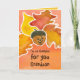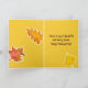 Una tarjeta de agradecimiento feliz personalizado para alguien especial que presenta un personaje de bellota feliz con hojas de colores ilustradas con acuarela en un cálido fondo de color naranja. En el interior hay un color amarillo dorado y más hojas. Puede editar el texto para que se ajuste a sus necesidades. ¡Tarjeta divertida para un nieto!