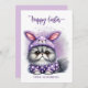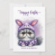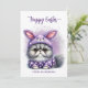 Tarjeta Festiva Gracioso lindo Kitty Bunny Costume Morado Feliz Pa