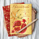 Tarjeta Festiva Granada de Acuarela Roja en Dorado para Rosh Hasha