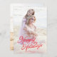 Tarjeta Festiva Grandes fotos de letras rojas superpuestas Felices