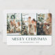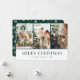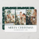 Modern green and white photo Christmas card featuring a photo collage on the front and a holiday pattern of snowflakes at the back. Easily personalize this elegant holiday card with your favorite photos and text.