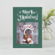 Cuidada y divertida tarjeta de plantilla de fotos para Navidades vacacionales para dueños de perros con un texto de tipografía retro en la parte superior que dice "cochinillo de ladrido" con la foto de tu perro cuadrado. El color de fondo es verde.