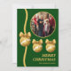 Tarjeta Festiva Green & Gold Ornaments Family Christmas Photo