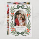 Celebrate the season with this elegant green ribbon holiday photo card, featuring hand-painted greenery, red berries, and a festive bow frame. The front showcases your favorite family photo and personalized message, while the back offers two options — a simple plain design or a three-photo grid layout to share more special memories.
