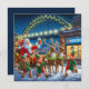 Papá Noel, sus elfos y algunos curiosos renos han llegado a un bullicioso Greggs junto al puente del Tyne, y la emoción está escrita en sus rostros. Papá Noel va al frente, mirando ansiosamente a través de la ventana de la tienda con una sonrisa alegre, mientras sus elfos saltan sobre sus dedos de los pies, listos para pedir sus golosinas favoritas. Los renos están acurrucados cerca, con los ojos muy abiertos por la anticipación, mientras uno empuja a Papá Noel, claramente esperando un stottie cake o dos. Detrás de ellos, el icónico puente del Tyne brilla con luces festivas contra el cielo fresco de la noche. Esta tarjeta trae un divertido giro Geordie a la Navidad, ¡mostrando a la tripulación de Papá Noel emocionada por una visita clásica a Greggs junto al Tyne!