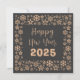 Square wish card Happy New Year written in English in gold font with a lot of golden stars on a grey background - editable text and background