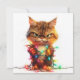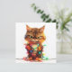 Este adorable gato tabby, rodeado a regañadientes de luces navideñas brillantes, aporta humor y encanto a tus saludos festivos. Ideal para los entusiastas de los felinos con sentido del humor.