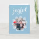 Joyful Script Blue Snowflake Frame Photo Holiday Card. Diseño de vacaciones de invierno con fotos rodeadas de hermosos copos de nieve blancos - también al fondo de la tarjeta. El fondo es azul. Agrega tu foto y personalizar el mensaje dentro o borra.