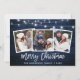 Guión de pincel de madera azul rústico Familia de fotos 3 Tarjeta navideña de merry con cadenas
