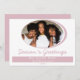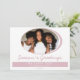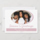 Tarjeta navideña con guión de bienvenida de la temporada rosa moderna. Diseño moderno con una foto en un marco ovalado de temática rosa pastel y blanco. Añade tu foto y personalizar el texto.