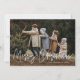 Tarjetas fotográficas de vacaciones modernas con tu foto horizontal con "Feliz Navidad" mostrada en un guión escrito a mano en blanco. Personalice la tarjeta de Navidades de fotos con su apellido y el año. La única tarjeta de vacaciones fotográfica se invierte para mostrar un fondo verde con puntos blancos sutiles.