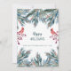 Tarjeta de felicitación de vacaciones de invierno de estilo rústico moderno con ramas de pino de moda en color azul marino, bayas de acebo y dos pájaros cardenales rojos junto con deseos de "Felices Fiestas" con tipografía editable y su nombre / firma. +++++++++++ Una forma sencilla de enviar sus felicitaciones de Navidad a familiares o socios comerciales corporativos. ++++++++++ La tarjeta tiene un ligero color rosa en el reverso para permitirle - si lo desea - agregar algunas líneas manuscritas personales y firma.
